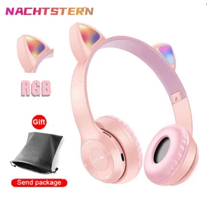 RGB Cute Cat Ears Bluetooth 5.0 Wireless Headphone With Microphone Noise Cancelling Kid Girl Stereo Music Casco Storage Bag Gift